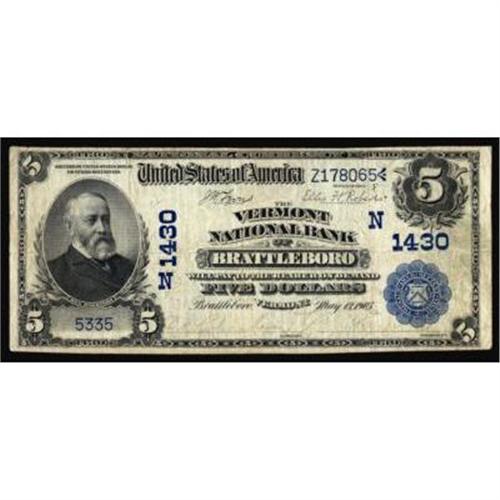 Brattleboro, VT. $5 1902 Date Back. The Vermont NB. Charter #(N)1430. Fine+.