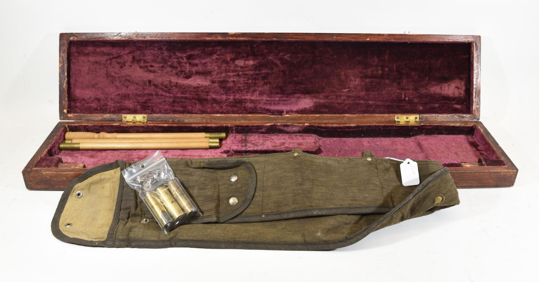 Brauer St Louis Model 12 Takedown Case. 3 Winchester 12ga Brass Hulls. Wooden Pump Shotgun Case.