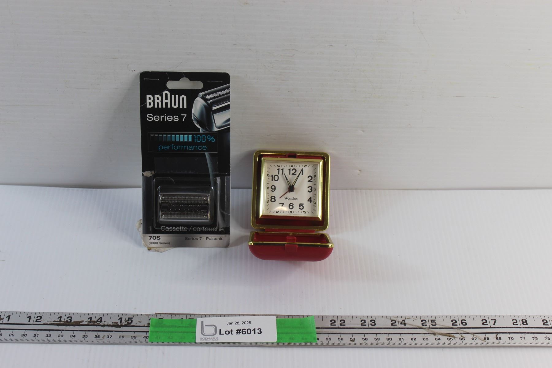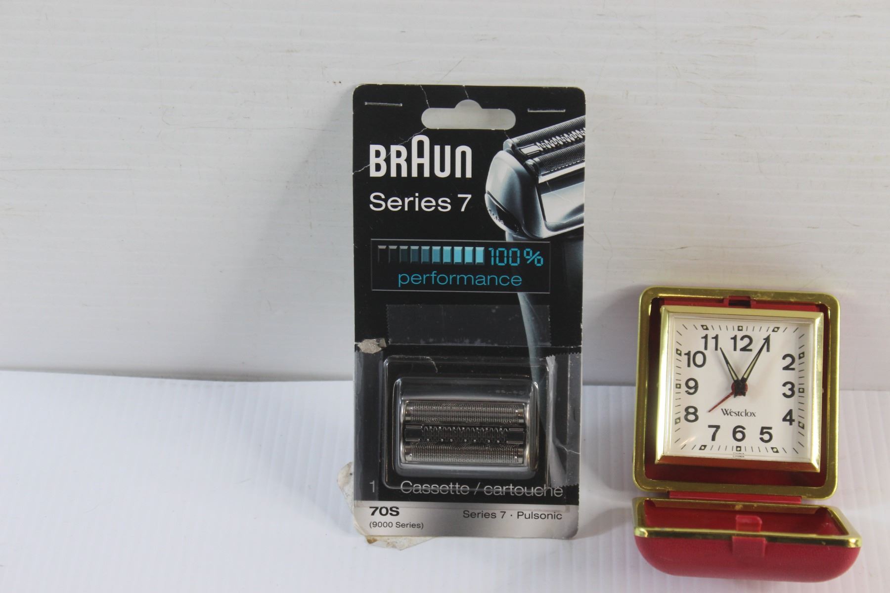 Braun Series 7 Razor Cassette - Sealed and Westclox Travel Clock - As Is
