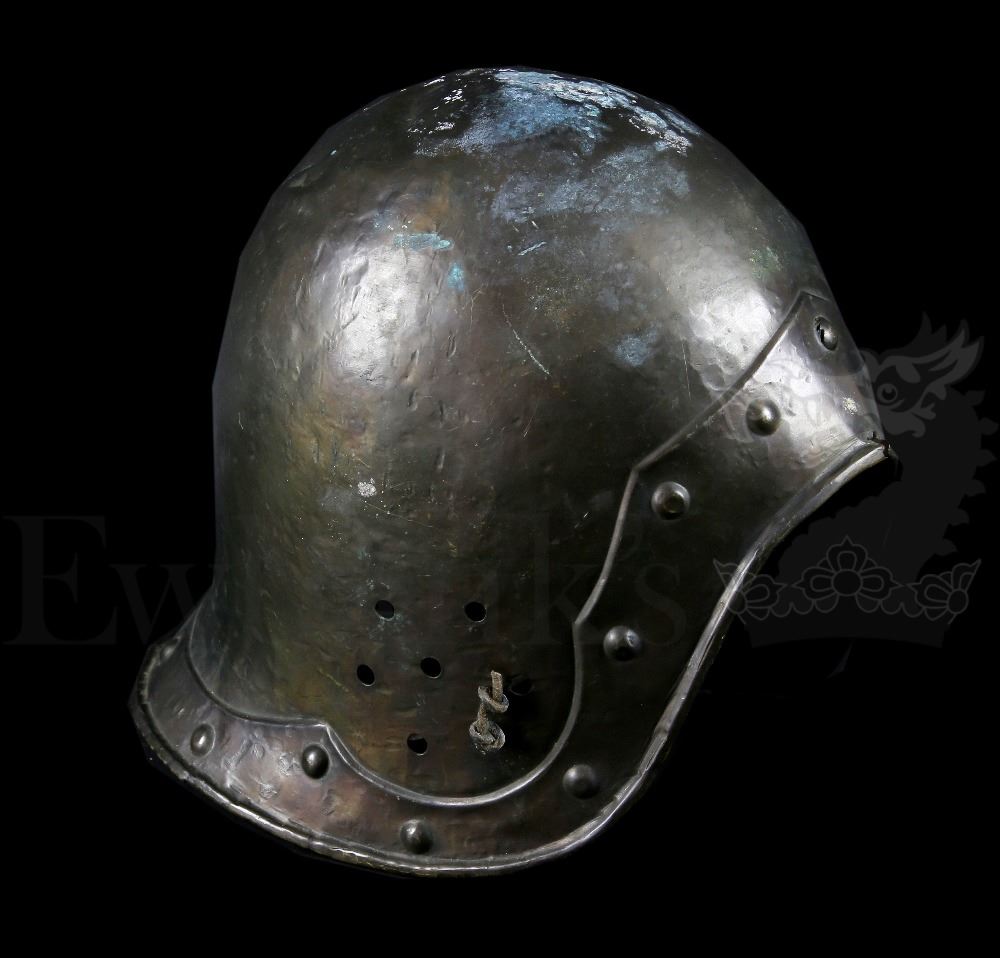 † Braveheart (1995) A hero English Soldier Helmet. Such Helmet's can be clearly seen throughout the film. This Helmet is of an all metal construction indicating that it is a 'hero' version for foreground use. The Helmet still retains a 'Property Of Clan Wallace' decal to the inside as this was one of the props gifted to them by the production company after filming as a sign of appreciation for their contribution to the film. The Helmet exhibits production battle wear/use to include dents to the back and what appears to be residue of stage blood to the top. Please note that VAT is payable on top of the hammer price at 20% in addition to standard buyers premium inc. VAT for this lot.