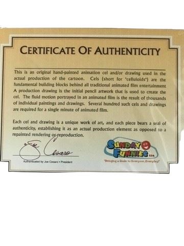 Bravestarr one of a kind animation production cel with COA.