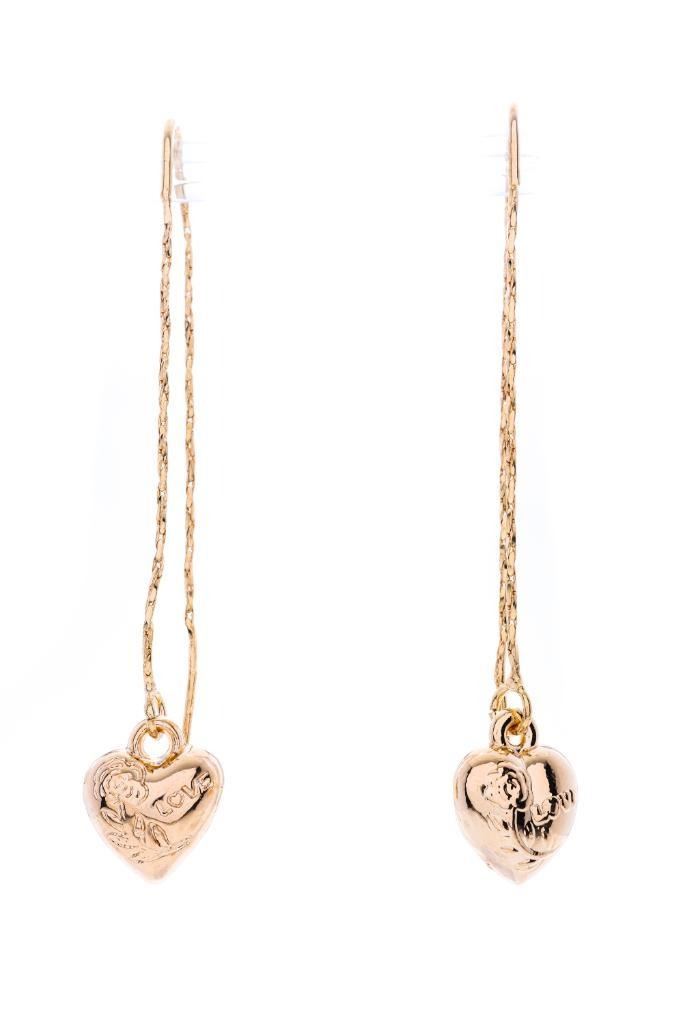 Brazil 18kt Gold Overlay Drop Chain/Heart Earrings