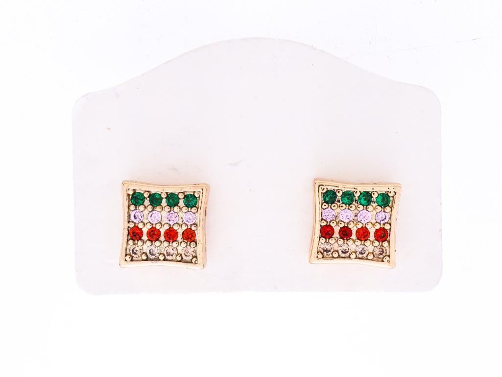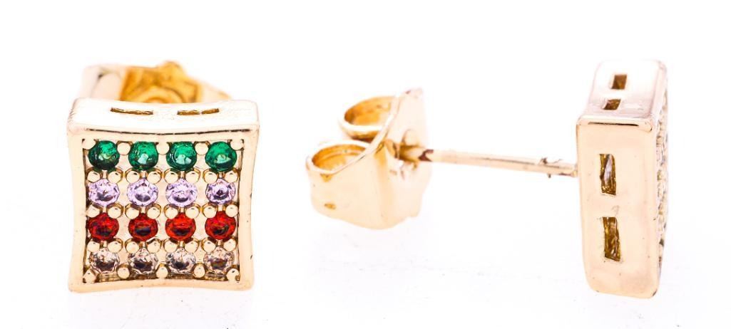 Brazil - 18kt Gold Overlay Square Style Stud Earrings, Multi colour Stones