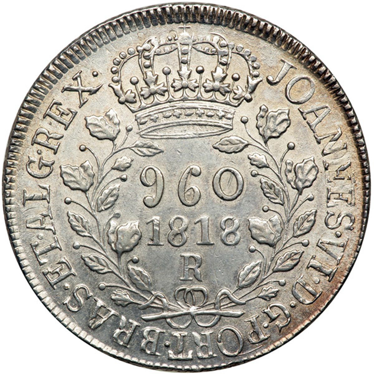 Brazil. 960 Reis, 1818-R. Eliz-30; KM-326.1. Over striking. Lustrous. Extremely Fine.