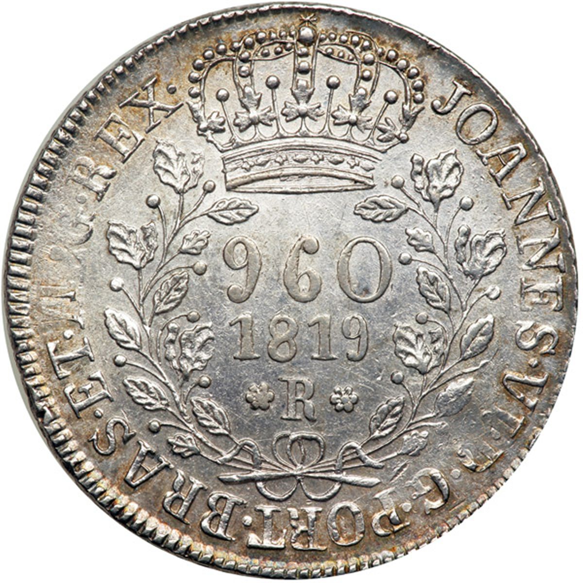 Brazil. 960 Reis, 1819-R. Eliz-31; KM-326.1. Signs of over striking. Lustrous. Extremely Fine to About Uncirculated.