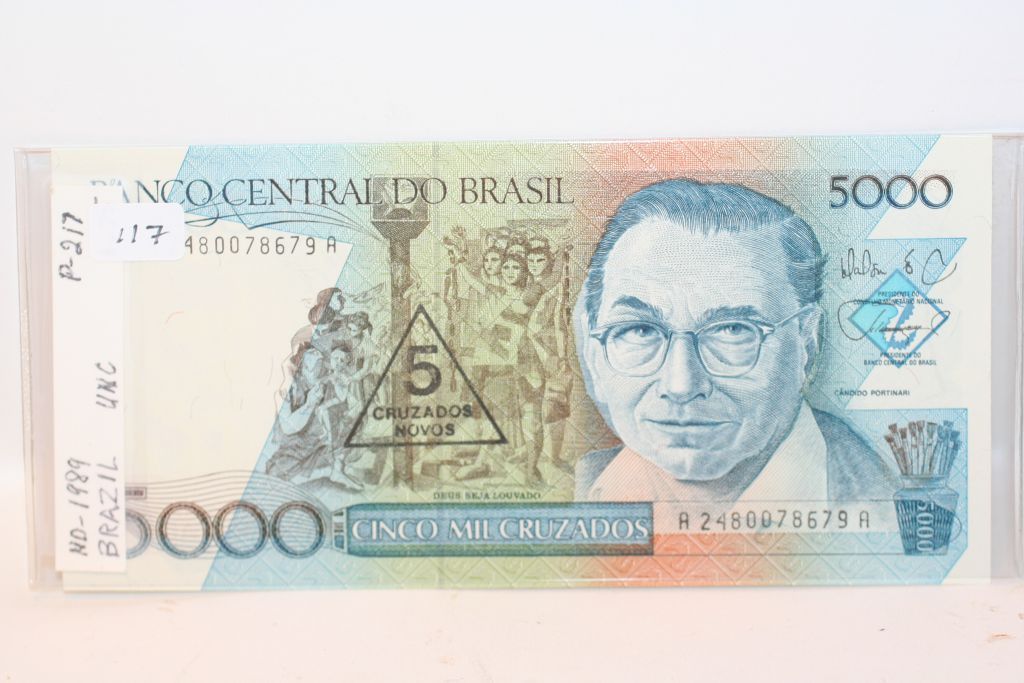 This lot is a 1989 brazil 5000 cruzados note