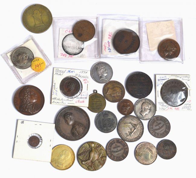 A varied assortment of twenty four, mostly base metal, medals and medalets from various series and topics including a few anti-slavery pieces. Features one 1855 Cholera medal. Some minor duplication, generally Fine or better. An intriguing study lot.