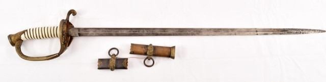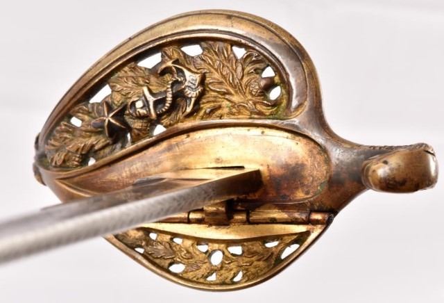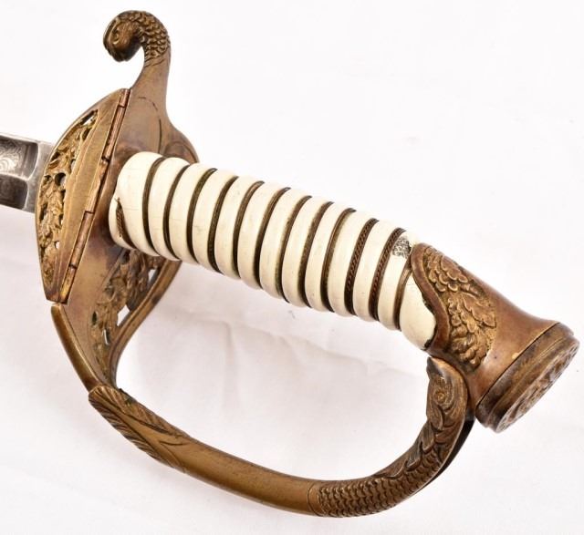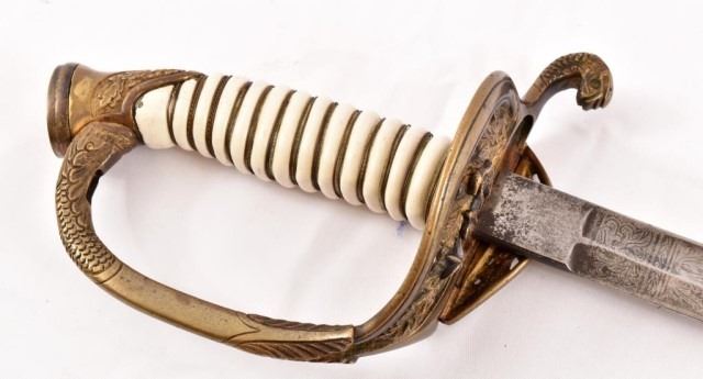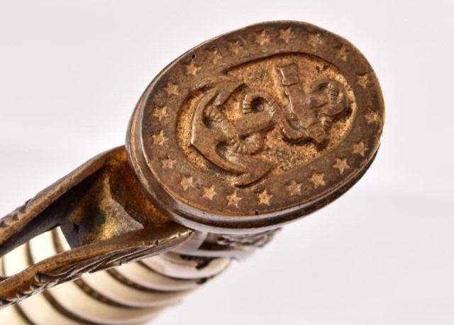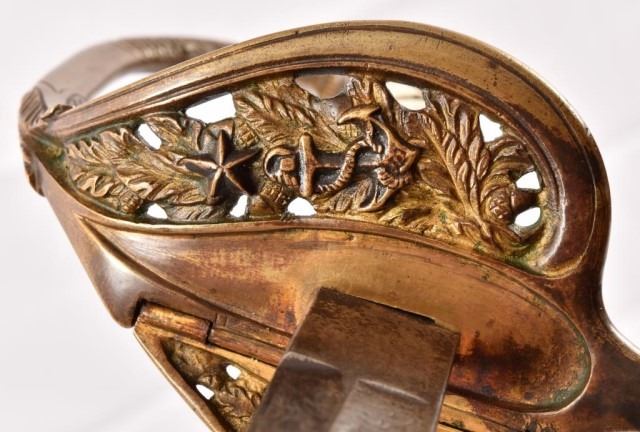 Brazil. Blade etched on both sides, Obverse blade - crossed cannon barrels and swabs, E.U.B. on banner, Fouled anchor, sailing vessel. Reversed blade - crossed cannon barrels, drum, flags and swabs, Brazilian