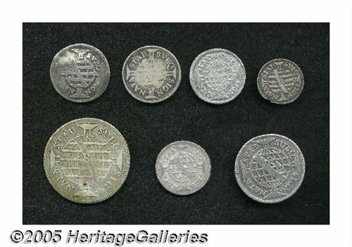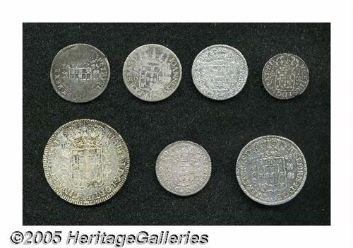 <B>Portuguese Colonial Silver Selection, </B></I>160 Reis 1695, crude Fine but large portions flat and mint uncertain, bold date, KM156 160 Reis 1748, AG-G, weak date, KM167 80 Reis 1751R, toned VF, natural edge flaw, scarce, KM191.2 160 Reis (2): 1773 VG
