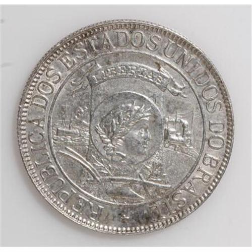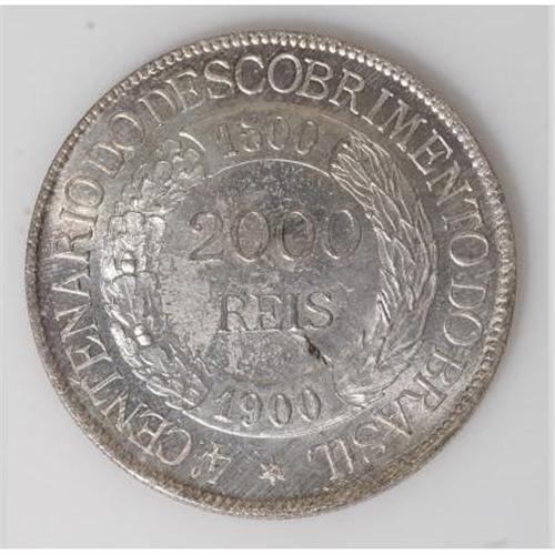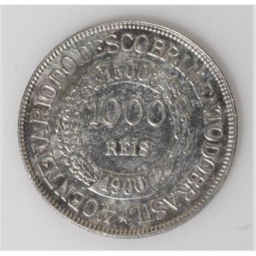 <B>Republic Discovery Commemoratives - Pair,</B></I> KM500 1000 Reis 1900, harshly cleaned AU, and KM501 2000 Reis 1900, fully lustrous AU-UNC, small carbon spot on the reverse. <B>Sold as is, no return lot.</B></I><BR><BR><b>Shipping:</b> Coins & Currency (<a target="_blank" href="http://www.heritageauctions.com/common/shipping.php">view shipping information</a>)