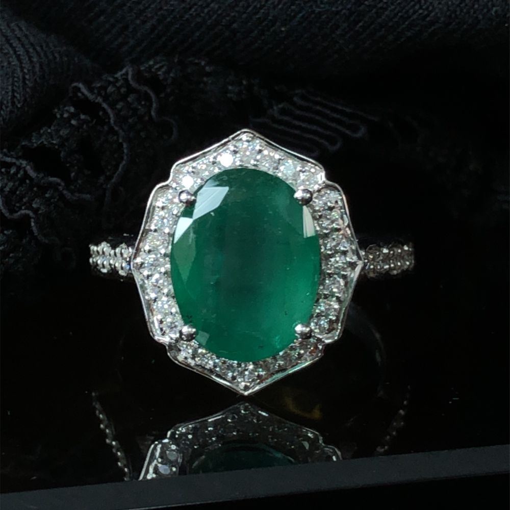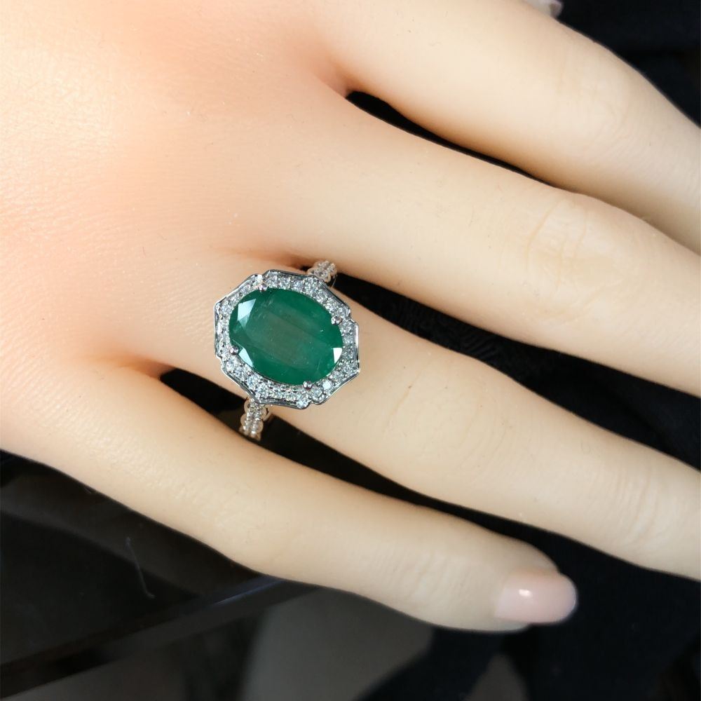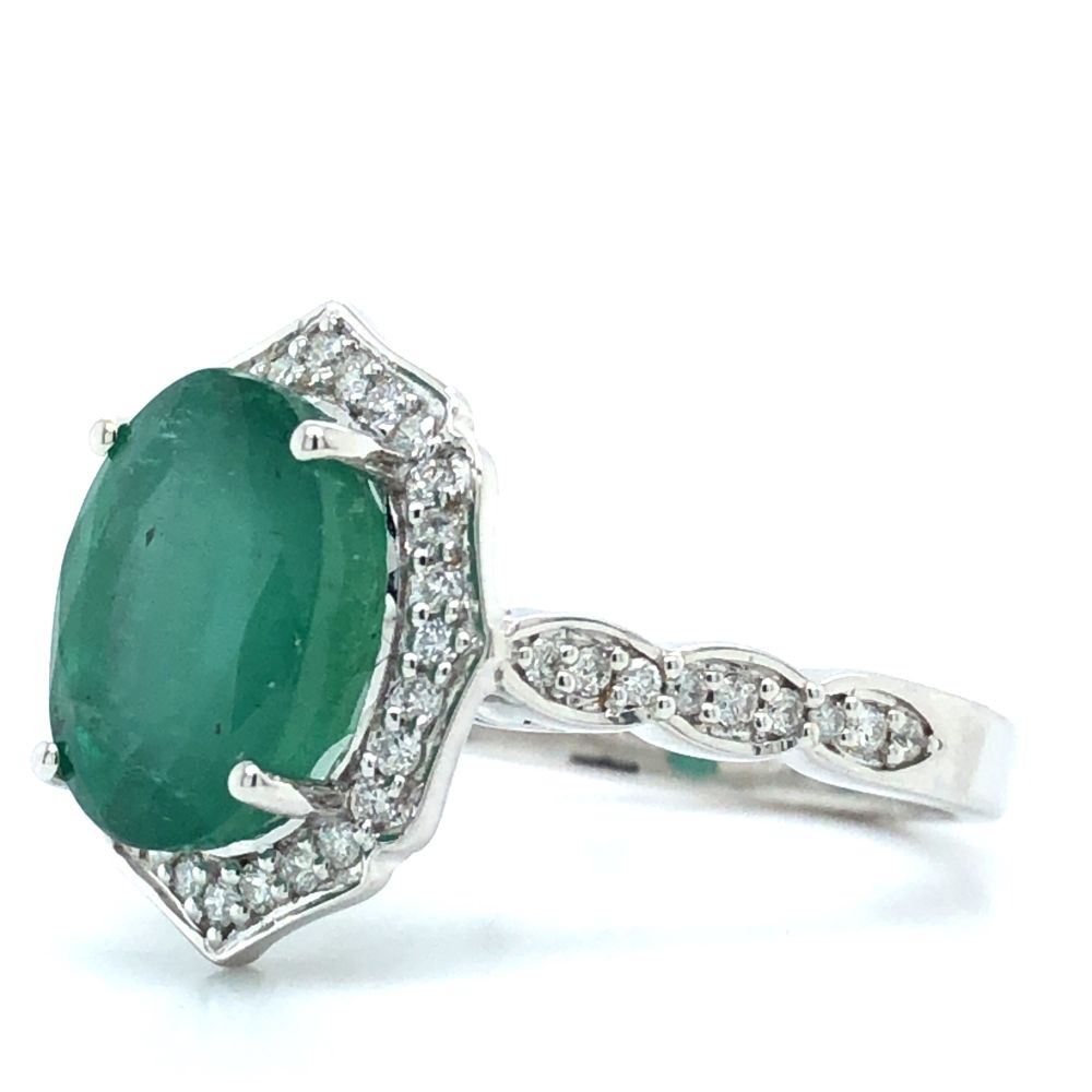 Brazilian Emerald and Ornate Diamond Halo Ring
