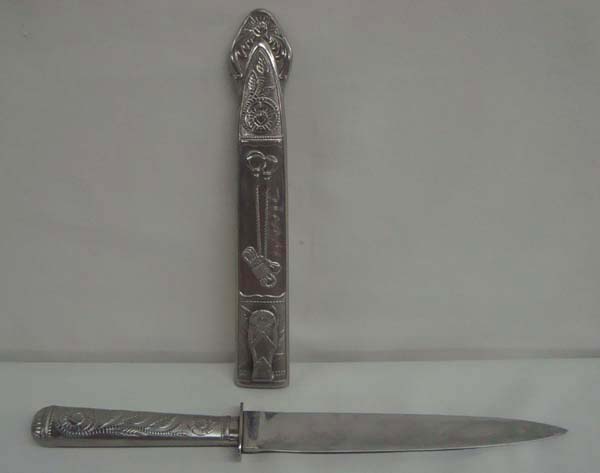 Brazilian Faca Gaucha Metal Boot Knife. Embossed on handle and sheath. Blade says, ''FACA GAUCHA Brazil.'' Also engraved on top of the knife sheath, ''Hercules Inox 18-8''. On the knife blade ''Gaucha''. Blade is 10.5'' long. Has belt clip. Buyers Pay Actual Shipping and Handling Charges(see terms and conditions for more information).
