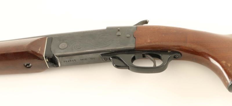 Companhia Brasileira de Cartuchos 410 gauge, 26" barrel length, scroll engraved frame. Address and caliber markings on the barrel. Model marking on the bottom of the frame. Blue finish throughout with walnut pistol grip stock and forearm. Black plastic butt plate, overall condition good; retains most of the blue finish throughout. The stock and forearm have nicks, dings and scratches, Bore is good, plastic spacer behind forend is broken on the underside. *Modern Firearm*