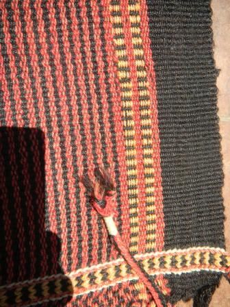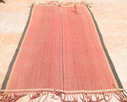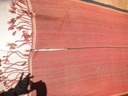 Brazilian Weaving red, black and gold color, Measures approximately measures 50 by 96 inches which includes the fringe. Shipping $15.00 Weaving is made in two pieces and sewn together. The two pieces have about a ten inch area with is separated.