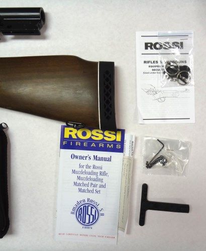 Braztech/Rossi matched Pair Muzzleloader Shotgun & Muzzleloader Combo 20 Gauge/50 Blkpwdr. Finish-Blue, Action-Single Shot, Stock-Walnut Finish Hardwood, Capacity-1, Chokes-Fixed Modified, Chamber-3", Safety-Transfer Bar, Taurus Security System, Sights-Shotgun: Bead Rifle: Fiber Optic, Barrel Length- Shotgun 28" Rifle 23", Overall Length- Shotgun 43" Rifle 38", Weight- Shotgun 5.6 lbs Rifle 6.3 lbs, Packaging- Soft Zippered Case, Features- Scope Mounted Base, Butt Plate- Black Rubber Recoil Pad with White Line Spacer, Receiver- Blue, Drilled & Tapped. Serial # SP999545. Comes with a lifetime Guarantee. Est 275.00-325.00