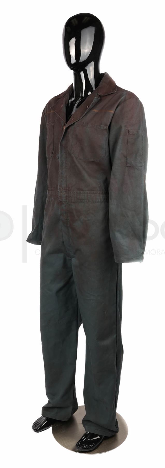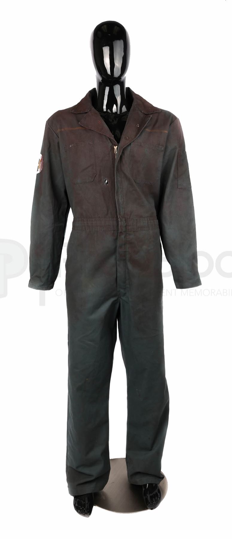 Crew uniform featured in the production of the 2020 science fiction film Breach. Fleeing a devastating plague on Earth, an interstellar ark comes under attack from a new threat a shape-shifting alien force intent on slaughtering what's left of humanity. This is a full length men's large jumpsuit, green in color and made from canvas. This piece features an arm patch and has been heavily distressed by the production with faux blood. This piece remains in excellent, production used condition.