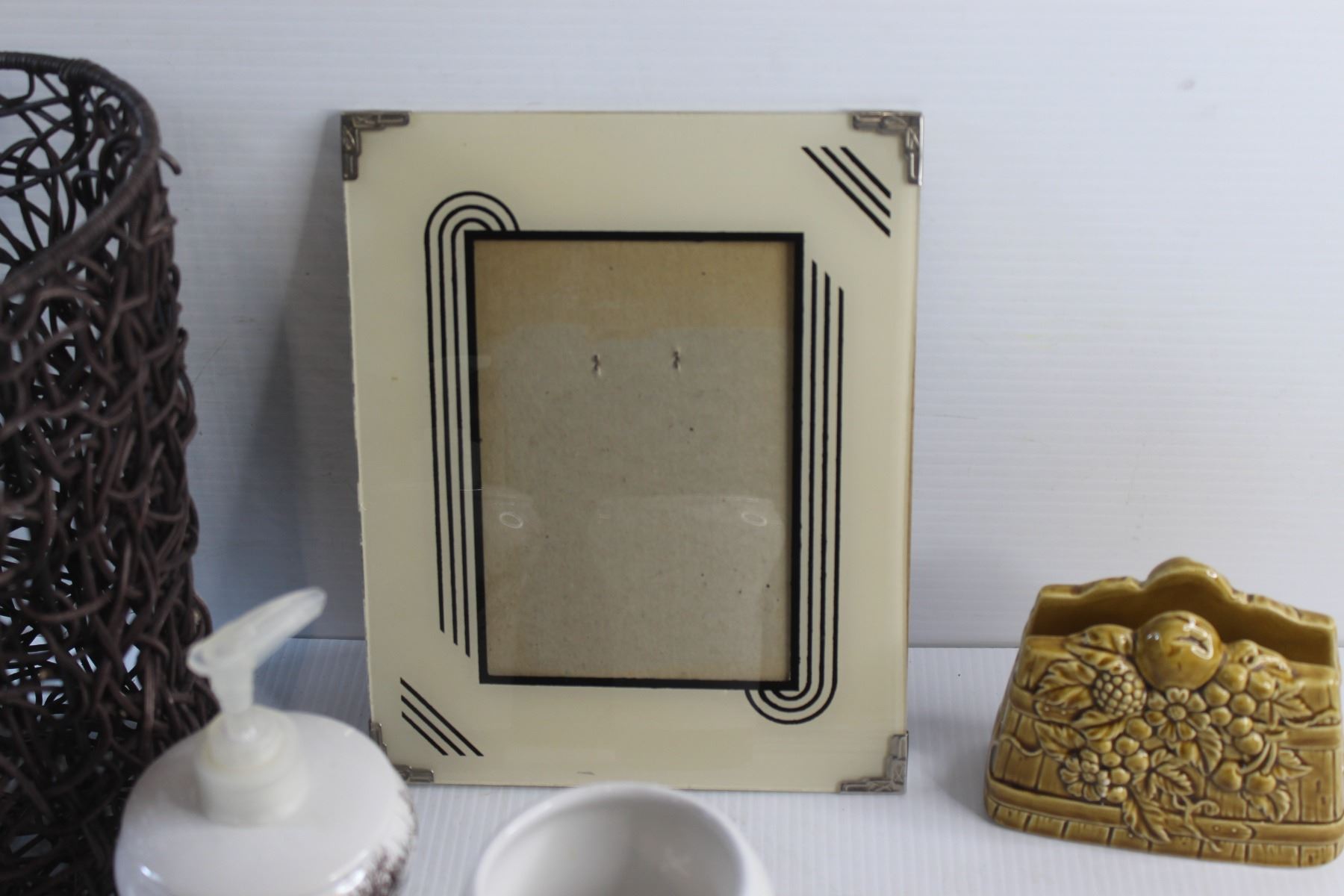 Bread Knives, Wicker Basket, Porcelain Tissue Holder, Photo Frame 7'' x 4 1/2'', Soap Dispenser and