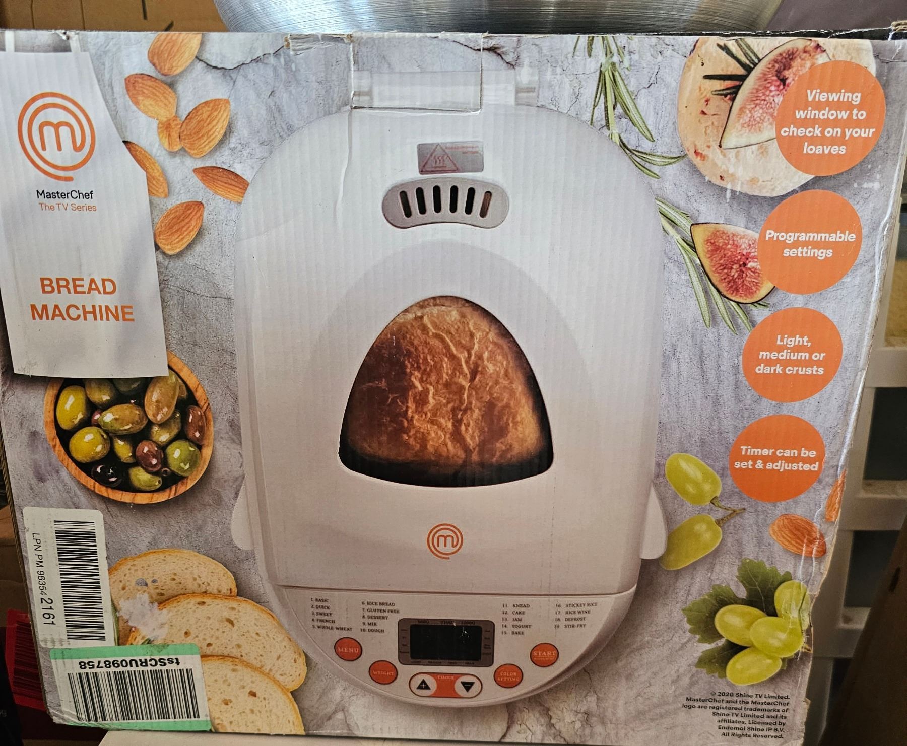 MasterChef Bread Maker- 2-Pound Programmable Machine w 19 Settings & 13-Hour Delay Timer- Automatic 3 Mode Crust, Baker Healthy Fresh Gluten Free, Wholewheat Loaf, New Condition