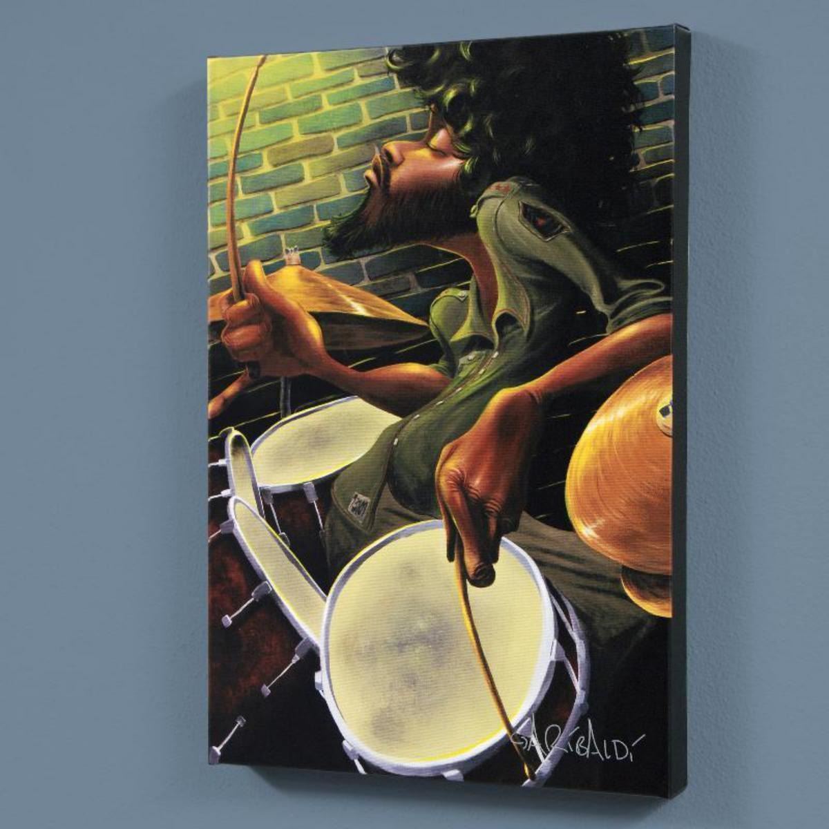 Combining his passions for music and art, David Garibaldi creates visual poetry. "Break Beat Fever" is a limited edition giclee on stretched canvas, M numbered and bearing the artist's authorized signature. This piece comes gallery wrapped. Includes Letter of Authenticity. Measures approx. 40" x 60" (image). Reference #: 237350.