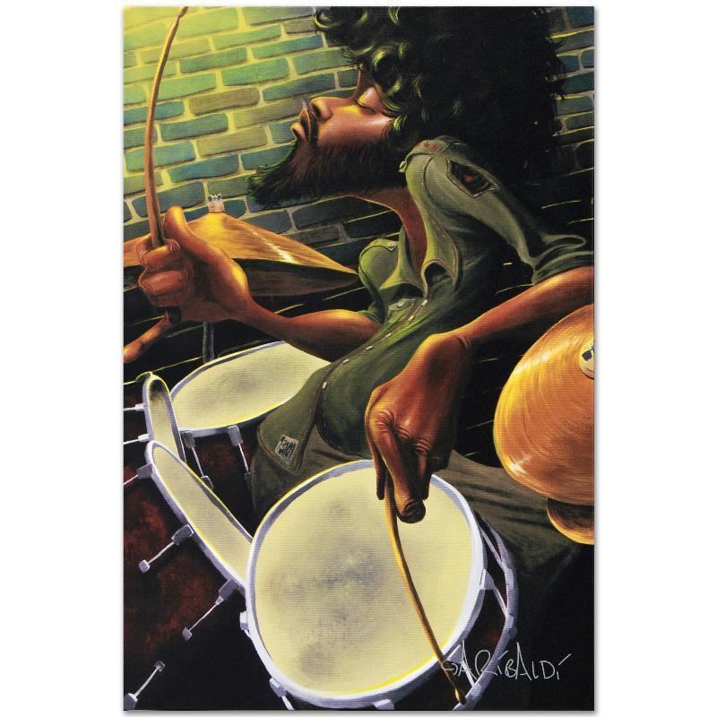 Combining his passions for music and art, David Garibaldi creates visual poetry. "Break Beat Fever" is a limited edition giclee on stretched canvas, E numbered and bearing the artist's authorized signature. This piece comes gallery wrapped. Includes Certificate of Authenticity! Measures approx. 24" x 36" (image).