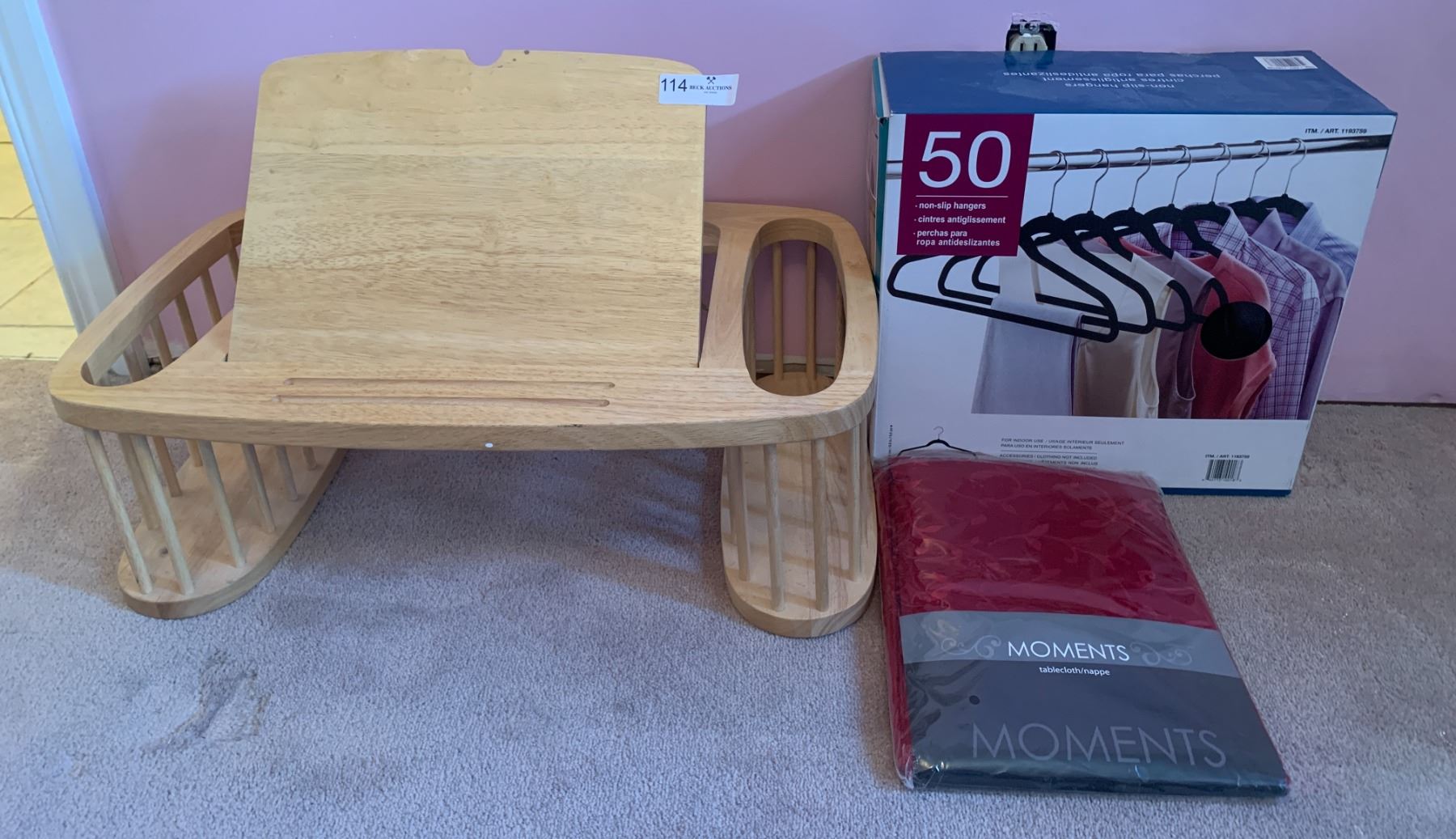 Breakfast Tray, Table Cloth, and 50 Non-Slip Hangers