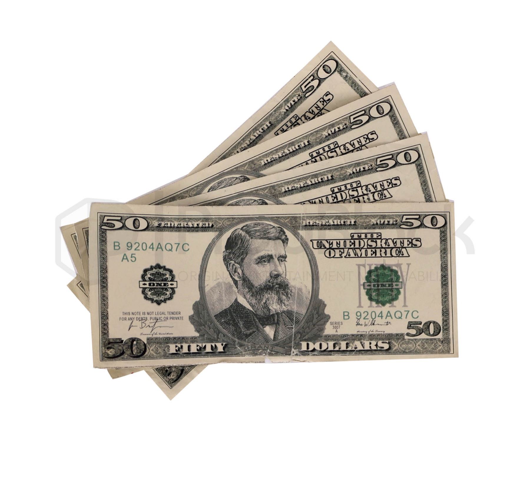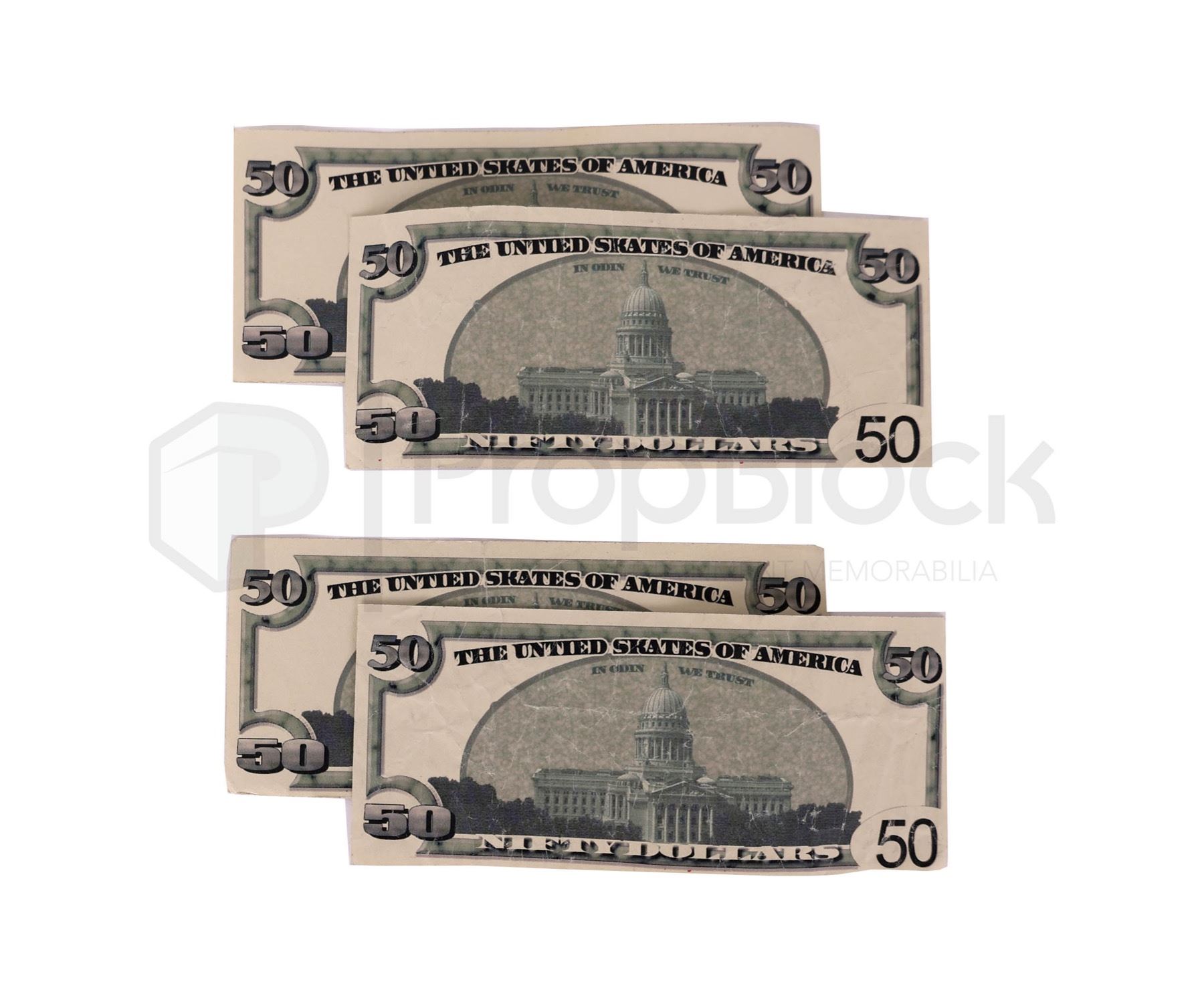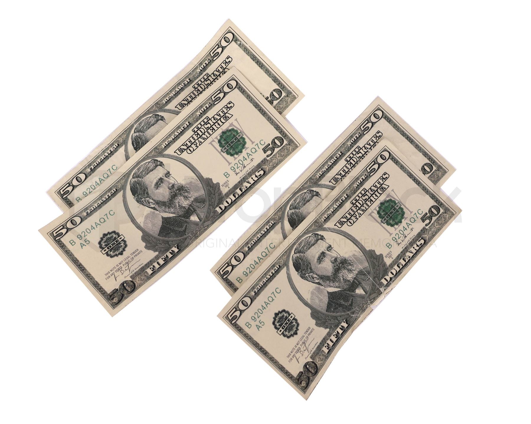 Collection of currency used in the production of the hit 2008 drama Breaking Bad. Mild-mannered high school chemistry teacher Walter White thinks his life can't get much worse. His salary barely makes ends meet, a situation not likely to improve once his pregnant wife gives birth, and their teenage son is battling cerebral palsy. But Walter is dumbstruck when he learns he has terminal cancer. Realizing that his illness probably will ruin his family financially, Walter makes a desperate bid to earn as much money as he can in the time he has left by turning an old RV into a meth lab on wheels. This set consists of four faux 1000 dollar bills that were used throughout the show as large amounts of money were present in the plot line. These remain in excellent, production used condition.
