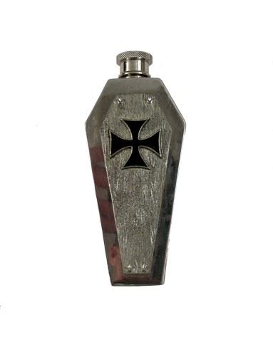 From AMC's hit TV series Breaking Bad (2008 to 2013) is this metal coffin flask with cross on the front. This was used in the production of the series. (approx. 5 1/2" long)