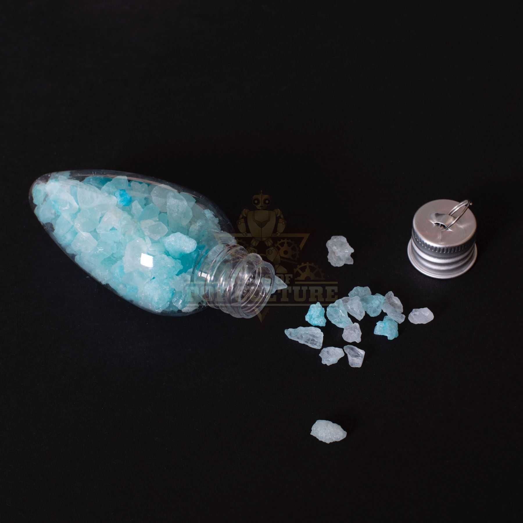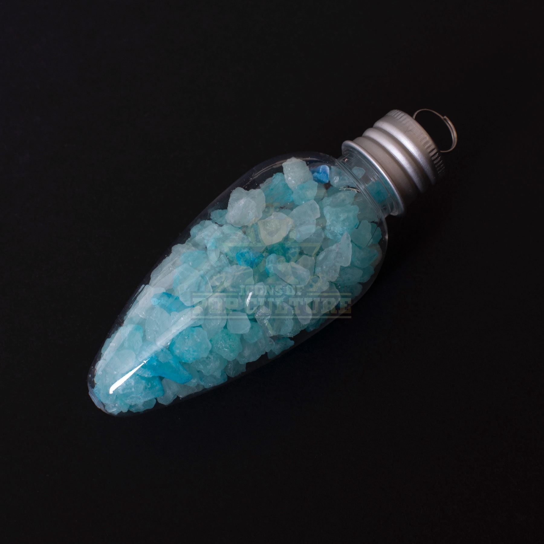 This prop “Blue Sky Meth” was acquired by the production for use various actors including Bryan Cranston as “Walter White” and Aaron Paul as “Jesse Pinkman” during filming of the series. The blue meth is housed in a plastic Christmas Ornament (for display) that measures 3.5” x 1.5”. A very iconic prop from the television series. *Christmas Tree not included with the prop meth*