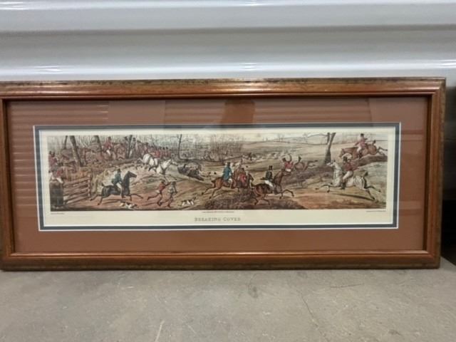 One of 3 matching tastefully framed classsic FoxHunting lithos published in London in the style of Currier & Ives. Each framed piece measures _" x _"