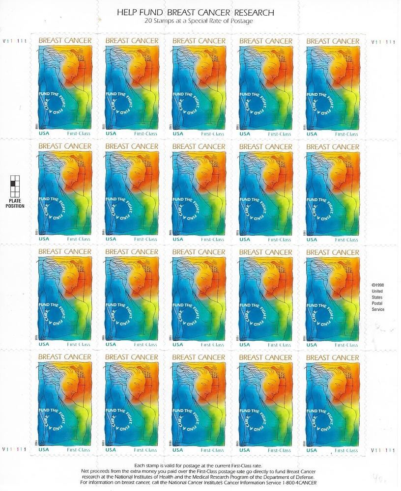 Breast Cancer stamp sheet 20 first class stamps