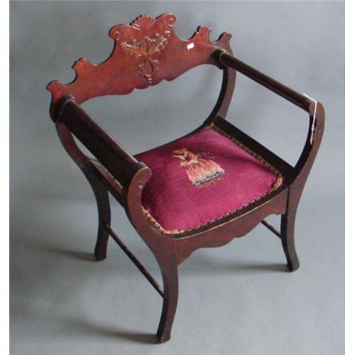 Breath Taking Carved Mahogany Rounded Barrel Type Chair with Needlework Seat.