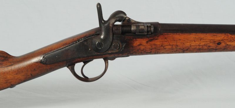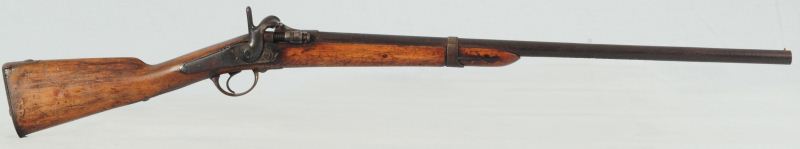 Breech Loading Cartridge Conversion Musket with less than safe looking breech mechanism. Early conversion.