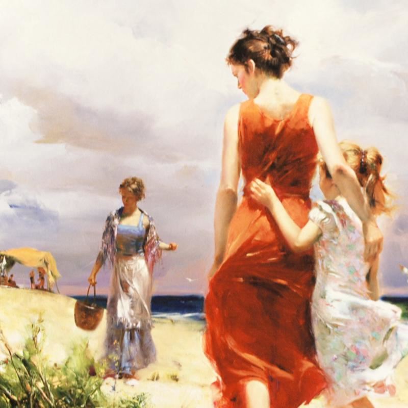 "Breezy Days" is a limited edition giclee on canvas, numbered and hand signed by Pino (1939-2010). Includes Certificate of Authenticity! Measures approx. 12" x 12" (image).