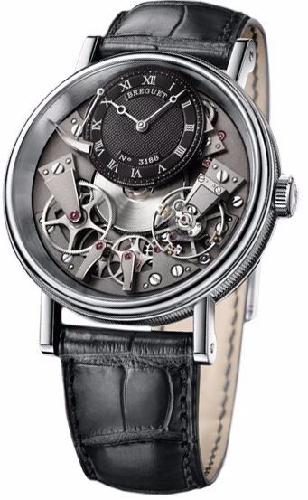 Model: 7057BB/G9/9W6 - CASE = [Material:18kt White Gold], [Case Diameter:40], [Case Thickness:11.65mm], [Bezel:Fixed], [Case Back:Skeleton], [Water Resistant:30 Meters - 100 Feet], [Crystal:Scratch Resistant Sapphire],; DIAL = [Color:Black and Grey],; MOVEMENT = [Type:Manual Winding], [Crown:Push In],; BAND = [Clasp:Tang], [Type:Black Alligator Leather], (Usually ships in 1 to 2 weeks.)