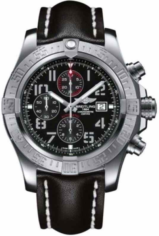 Model: A1337111/BC28-441X - CASE = [Material:Stainless Steel], [Case Diameter:48], [Bezel:Unidirectional rotating], [Water Resistant:300 Meters - 1000 Feet], [Crystal:Scratch Resistant Sapphire],; DIAL = [Color:Black],; MOVEMENT = [Type:Chronograph Automatic Self Winding], [Crown:Screw Down],; BAND = [Clasp:Pin & Buckle], [Type:Leather], (In Stock - Ready to ship.)