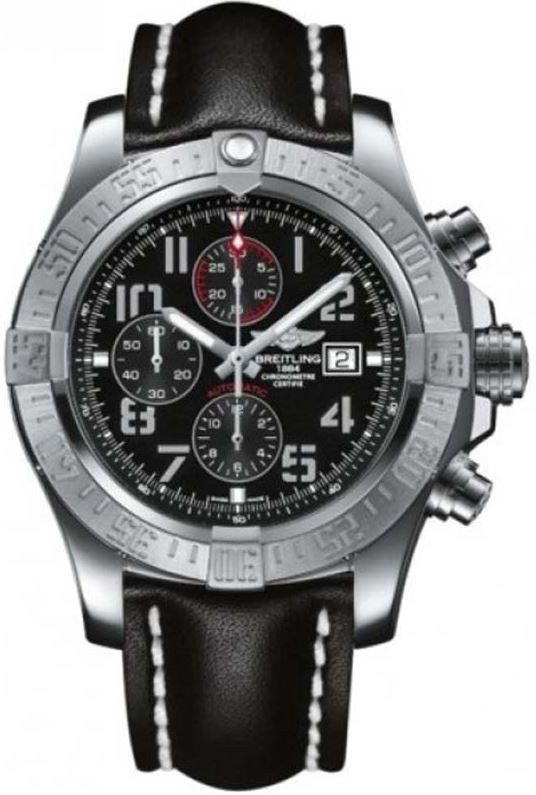 Model: A1337111/BC28-441X - CASE = [Material:Stainless Steel], [Case Diameter:48], [Bezel:Unidirectional rotating], [Water Resistant:300 Meters - 1000 Feet], [Crystal:Scratch Resistant Sapphire], DIAL = [Color:Black], MOVEMENT = [Type:Chronograph Automatic Self Winding], [Crown:Screw Down], BAND = [Clasp:Pin & Buckle], [Type:Leather], (In Stock - Ready to ship.)