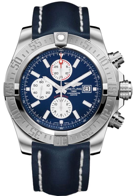 Model: A1337111/C871-101X - CASE = [Material:Stainless Steel], [Case Diameter:48], [Bezel:Unidirectional rotating], [Water Resistant:300 Meters - 1000 Feet], [Crystal:Scratch Resistant Sapphire], DIAL = [Color:Blue], MOVEMENT = [Type:Chronograph Automatic Self Winding], [Crown:Screw Down], BAND = [Clasp:Pin & Buckle], [Type:Blue Leather], (Usually ships in 1 to 2 weeks.)