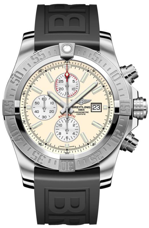 Model: A1337111/G779-155S - CASE = [Material:Stainless Steel], [Case Diameter:48], [Bezel:Unidirectional rotating], [Water Resistant:300 Meters - 1000 Feet], [Crystal:Scratch Resistant Sapphire], DIAL = [Color:Silver], MOVEMENT = [Type:Chronograph Automatic Self Winding], [Crown:Screw Down], BAND = [Clasp:Pin & Buckle], [Type:Black Rubber], (In Stock - Ready to ship.)
