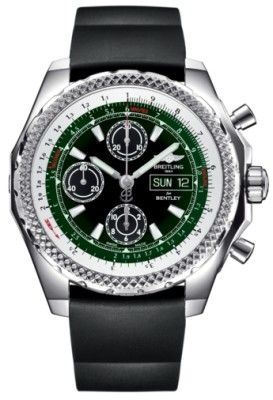 Model: A1336512/L520-DPT - CASE = [Material:Stainless Steel], [Case Diameter:45], [Case Thickness:15mm], [Bezel:Bi-Directional Rotating], [Case Back:Solid], [Water Resistant:100 Meters/330 Feet], [Crystal:Scratch Resistant Sapphire], DIAL = [Color:Midnight Emerald Chronograph], MOVEMENT = [Type:Automatic Self Winding Chronograph-Chronometer], BAND = [Clasp:Tang], [Type:Black Rubber], (Usually ships in 1 to 2 weeks.)