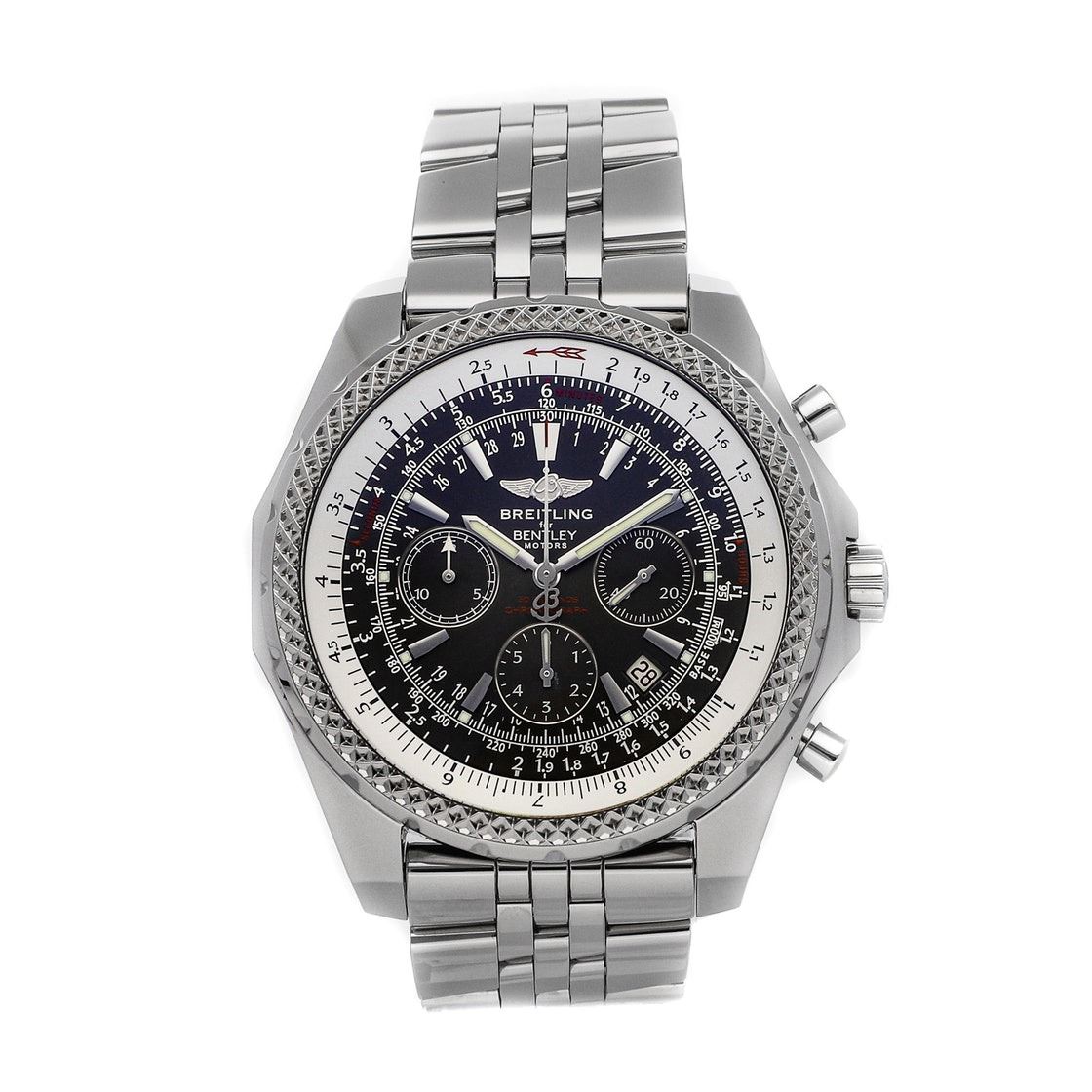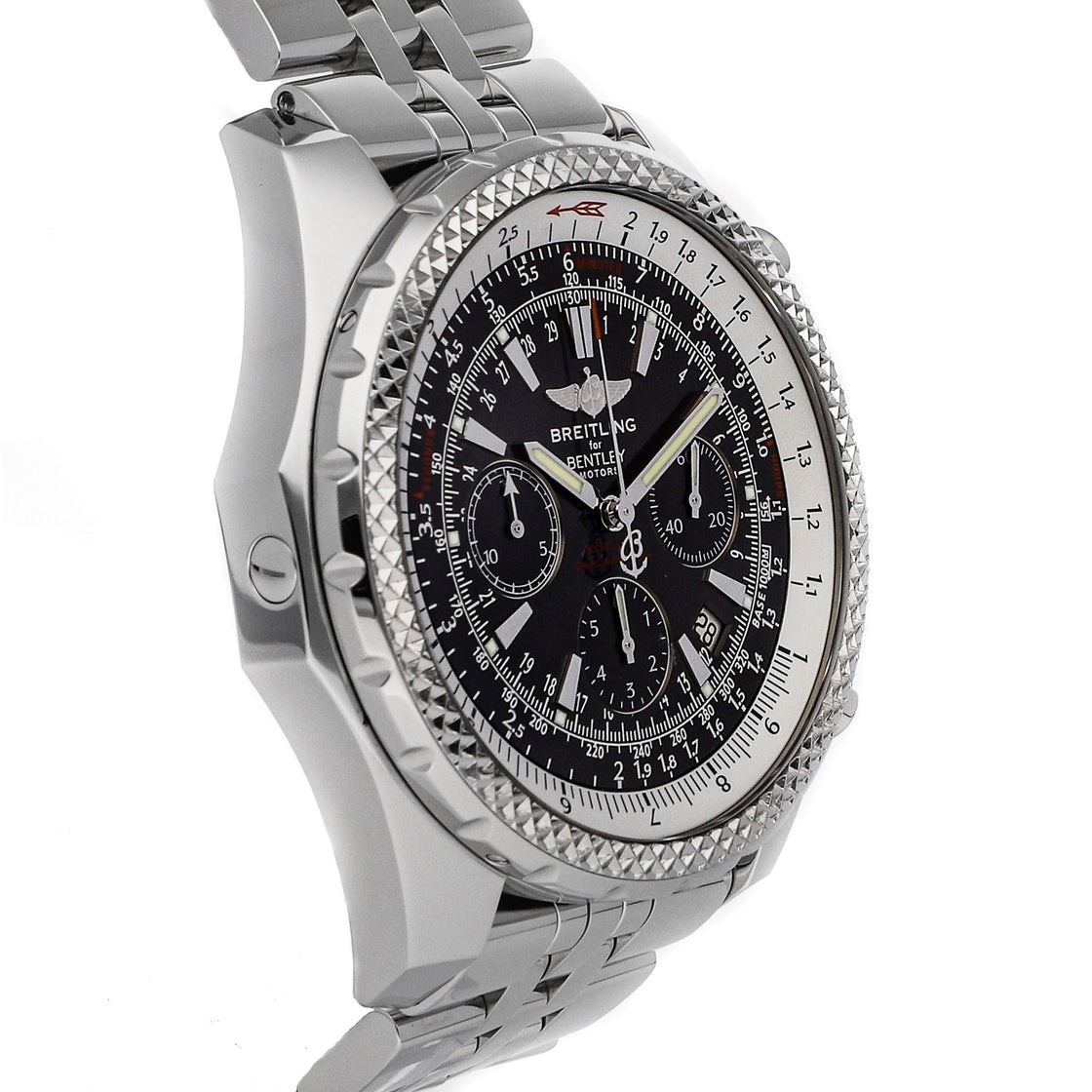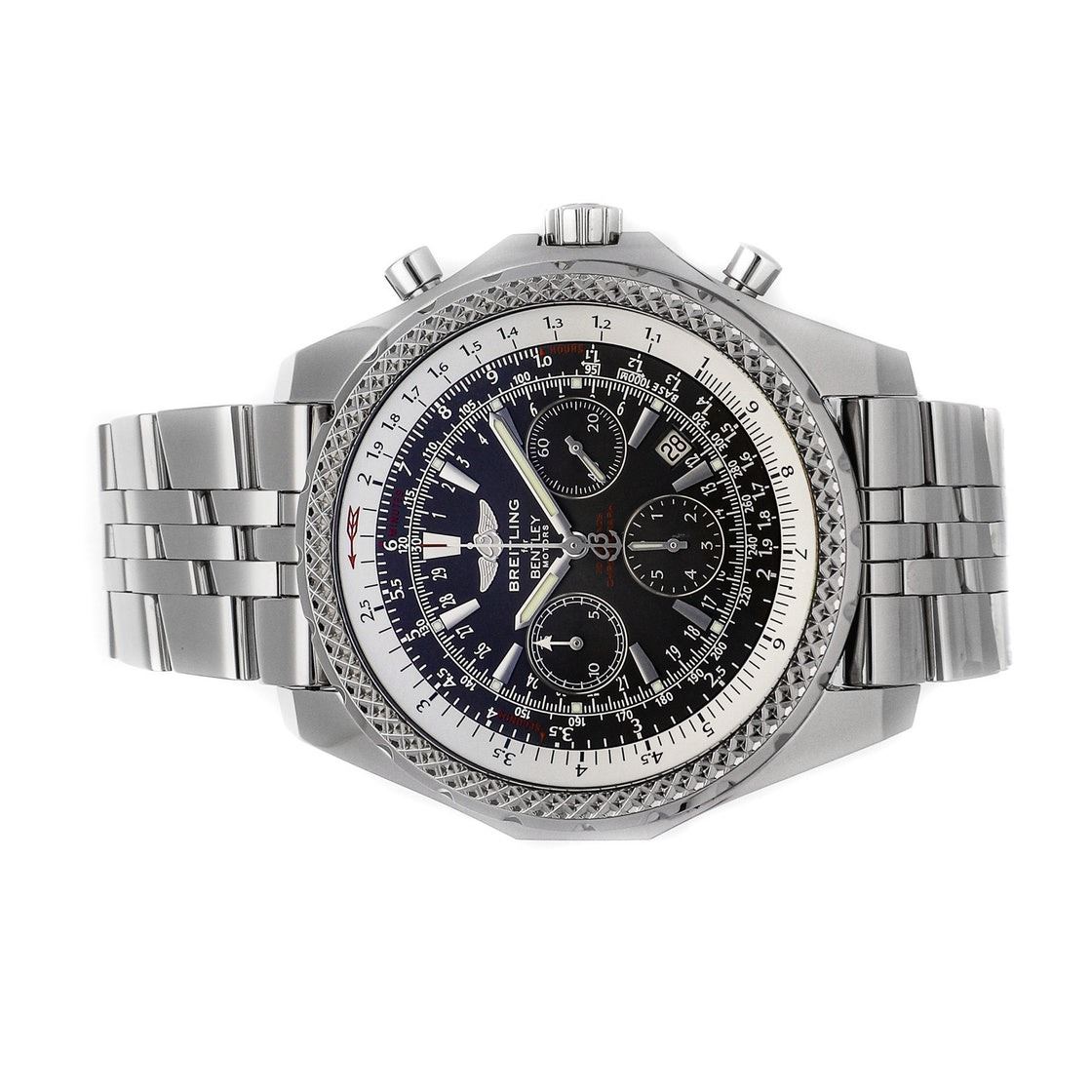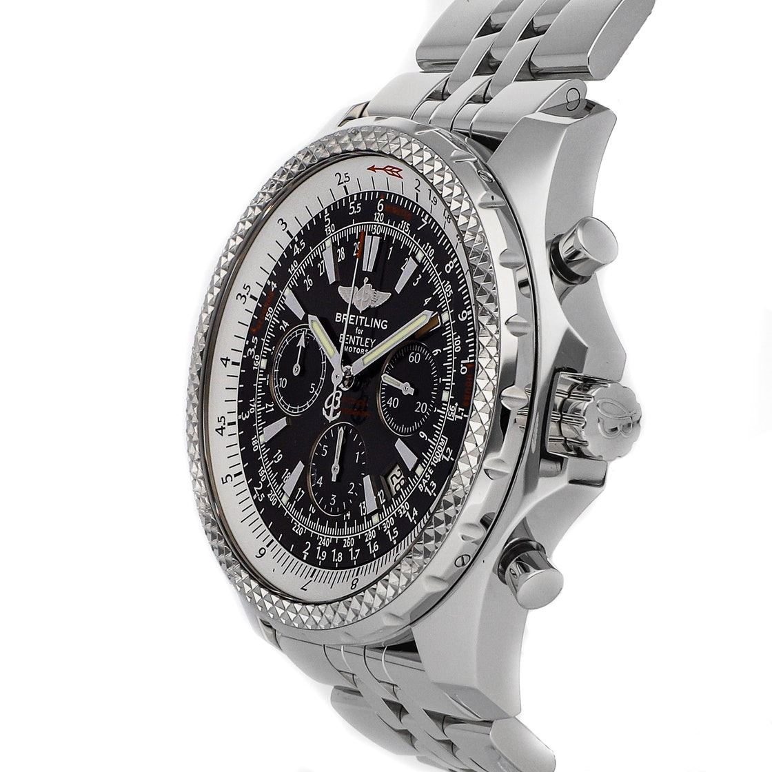 Breitling Bentley Motors Anthracite Chronograph (A2536212B814) self-winding automatic watch, features a 48.7mm stainless steel case surrounding an anthracite grey dial on a stainless steel Speed bracelet with folding buckle.