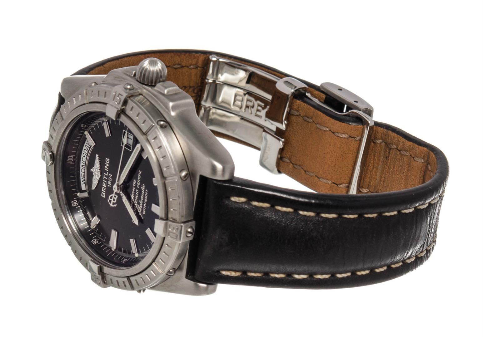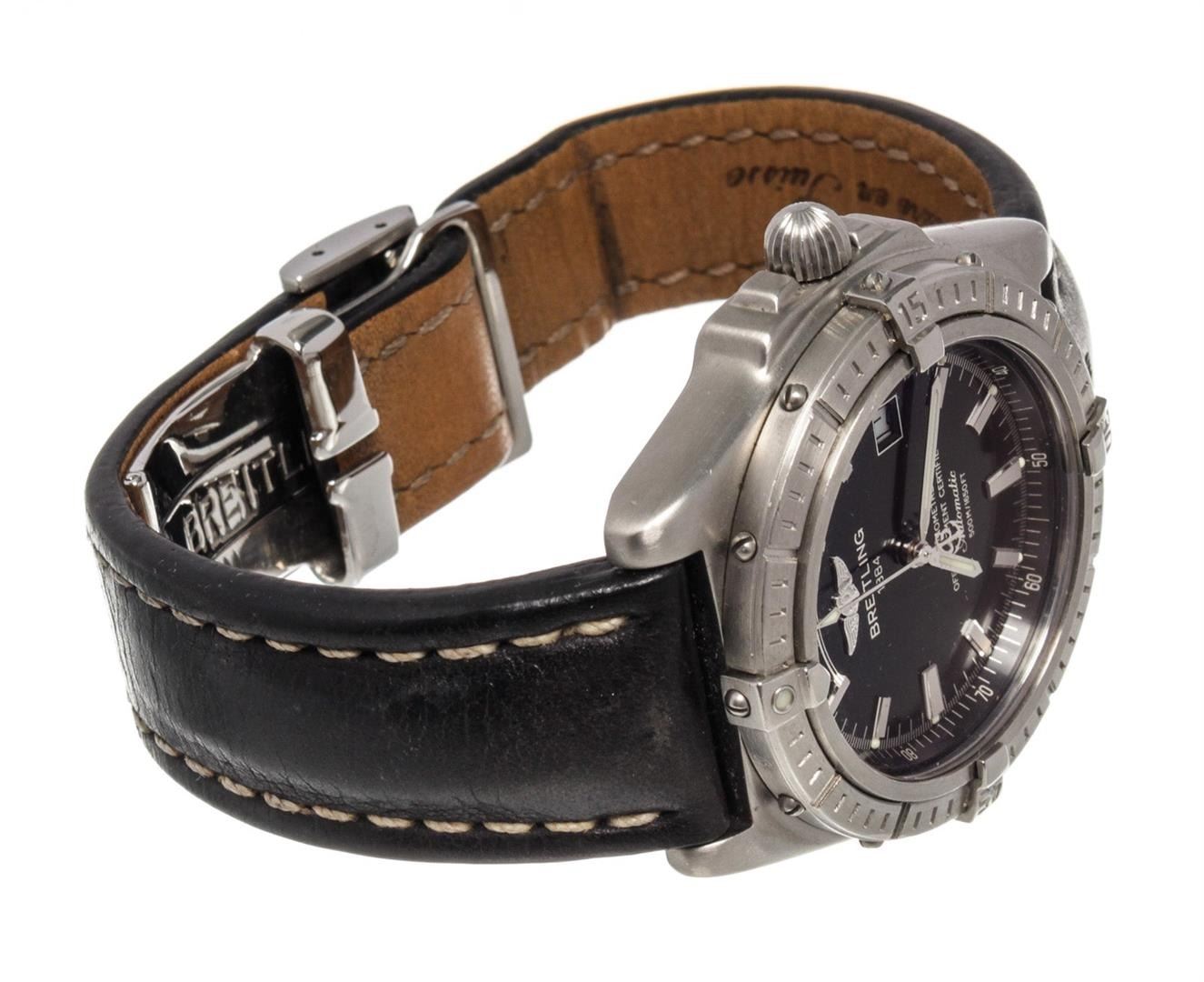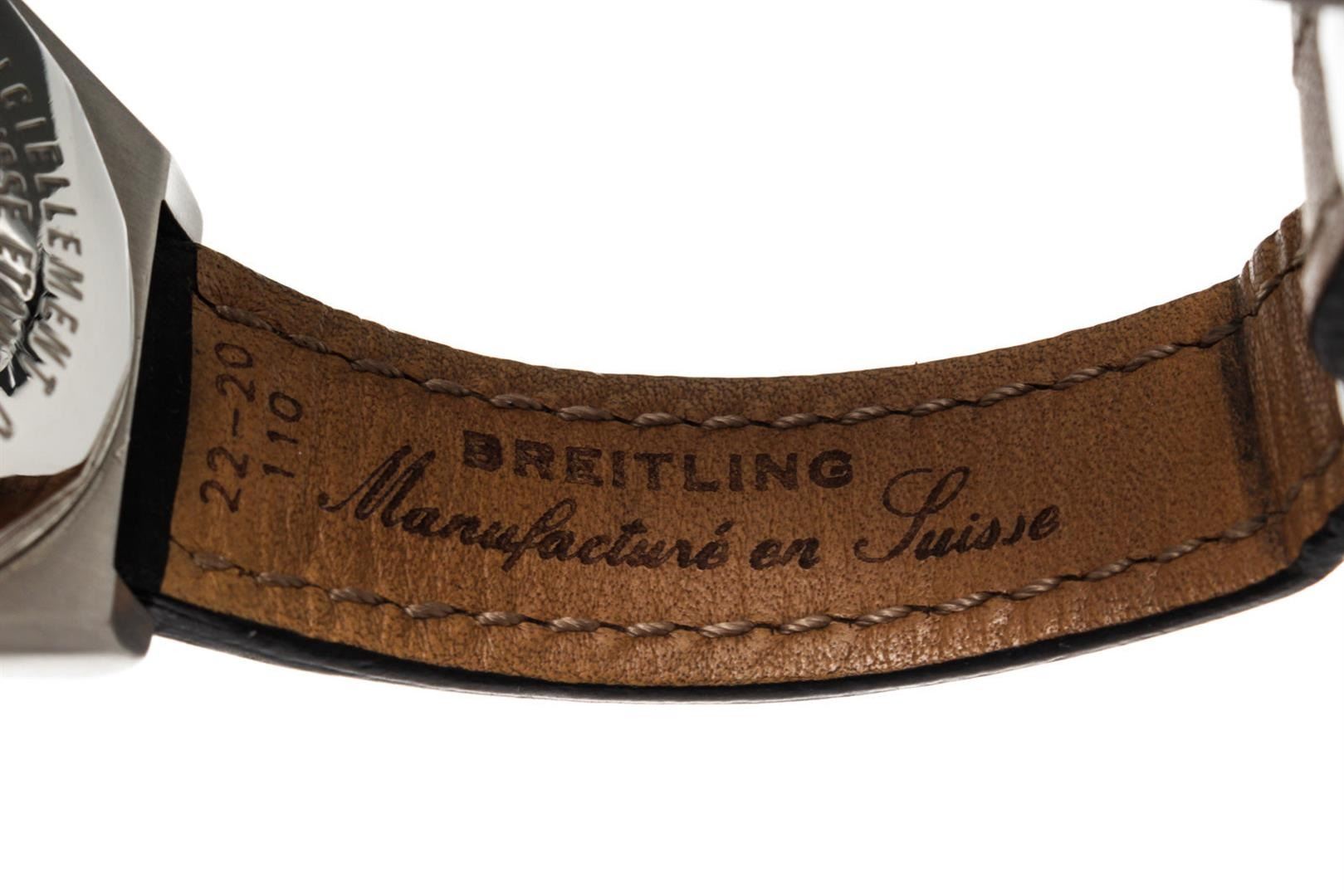 One Breitling Black Leather Chronomet Watch. Item is sold AS-IS. All available information is listed in the description and shown in the photo. Breitling Black Leather Chronomet Watch with leather, silver-tone hardware.