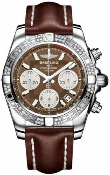 Model: AB0140AA/Q583-LST - CASE = [Material:Stainless Steel], [Case Diameter:41], [Case Thickness:15.40mm], [Bezel:Uni-Directional Rotating with Diamonds], [Case Back:Solid], [Water Resistant:300 Meters/1000 Feet], [Crystal:Scratch Resistant Sapphire],; DIAL = [Color:Brown Chronograph],; MOVEMENT = [Type:Automatic Self Winding Chronograph-Chronometer], [Crown:Screw Down],; BAND = [Clasp:Tang], [Type:Brown Calfskin Leather], (Usually ships in 1 to 2 weeks.)
