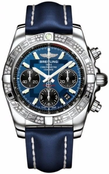Model: AB0140AA/C830-LST - CASE = [Material:Stainless Steel], [Case Diameter:41], [Case Thickness:15.40mm], [Bezel:Uni-Directional Rotating with Diamonds], [Case Back:Solid], [Water Resistant:300 Meters/1000 Feet], [Crystal:Scratch Resistant Sapphire],; DIAL = [Color:Blue Chronograph],; MOVEMENT = [Type:Automatic Self Winding Chronograph-Chronometer], [Crown:Screw Down],; BAND = [Clasp:Tang], [Type:Blue Calfskin Leather], (Usually ships in 1 to 2 weeks.)