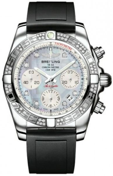 Model: AB0140AA/G712-DPT - CASE = [Material:Stainless Steel], [Case Diameter:41], [Case Thickness:15.40mm], [Bezel:Uni-Directional Rotating with Diamonds], [Case Back:Solid], [Water Resistant:300 Meters/1000 Feet], [Crystal:Scratch Resistant Sapphire],; DIAL = [Color:Mother of Pearl Chronograph],; MOVEMENT = [Type:Automatic Self Winding Chronograph-Chronometer], [Crown:Screw Down],; BAND = [Clasp:Tang], [Type:Black Rubber], (Usually ships in 1 to 2 weeks.)