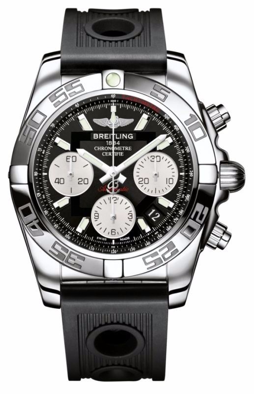 Model: AB014012/BA52-ORD - CASE = [Material:Stainless Steel], [Case Diameter:41], [Case Thickness:15.40mm], [Bezel:Uni-Directional Rotating], [Case Back:Solid], [Water Resistant:300 Meters/1000 Feet], [Crystal:Scratch Resistant Sapphire],; DIAL = [Color:Black Chronograph],; MOVEMENT = [Type:Automatic Self Winding Chronograph-Chronometer], [Crown:Screw Down],; BAND = [Clasp:Deployment], [Type:Black Rubber], (Usually ships in 1 to 2 weeks.)