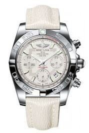 Model: AB014012/G711-237X - CASE = [Material:Stainless Steel], [Case Diameter:41], [Bezel:Unidirectional rotating], [Case Back:Solid], [Water Resistant:300 Meters - 1000 Feet], [Crystal:Scratch Resistant Sapphire],; DIAL = [Color:Silver],; MOVEMENT = [Type:Chronograph Automatic Self Winding], [Crown:Screw Down],; BAND = [Clasp:Pin & Buckle], [Type:Lizard Leather], (Usually ships in 1 to 2 weeks.)
