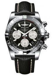 Model: AB014012/BA52-218X - CASE = [Material:Stainless Steel], [Case Diameter:41], [Bezel:Unidirectional rotating], [Case Back:Solid], [Water Resistant:100 Meters - 330 Feet], [Crystal:Scratch Resistant Sapphire],; DIAL = [Color:Black],; MOVEMENT = [Type:Chronograph Automatic Self Winding], [Crown:Screw Down],; BAND = [Clasp:Pin & Buckle], [Type:Lizard Leather], (Usually ships in 1 to 2 weeks.)