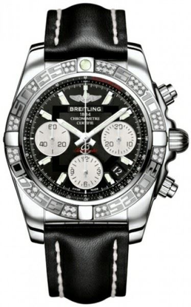 Model: AB0140AA/BA52-LST - CASE = [Material:Stainless Steel], [Case Diameter:41], [Case Thickness:15.40mm], [Bezel:Uni-Directional Rotating with Diamonds], [Case Back:Solid], [Water Resistant:300 Meters/1000 Feet], [Crystal:Scratch Resistant Sapphire], DIAL = [Color:Black Chronograph], MOVEMENT = [Type:Automatic Self Winding Chronograph-Chronometer], [Crown:Screw Down], BAND = [Clasp:Tang], [Type:Black Calfskin Leather], (Usually ships in 1 to 2 weeks.)