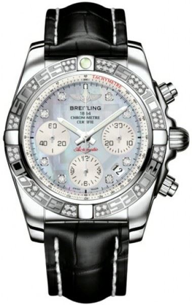 Model: AB0140AA/G712-CROCT - CASE = [Material:Stainless Steel], [Case Diameter:41], [Case Thickness:15.40mm], [Bezel:Uni-Directional Rotating with Diamonds], [Case Back:Solid], [Water Resistant:300 Meters/1000 Feet], [Crystal:Scratch Resistant Sapphire], DIAL = [Color:Mother of Pearl Chronograph], MOVEMENT = [Type:Automatic Self Winding Chronograph-Chronometer], [Crown:Screw Down], BAND = [Clasp:Tang], [Type:Black Crocodile Leather], (Usually ships in 1 to 2 weeks.)