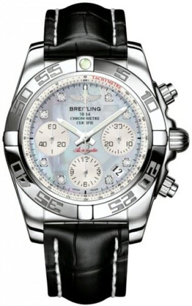 Model: AB014012/G712-CROCD - CASE = [Material:Stainless Steel], [Case Diameter:41], [Case Thickness:15.40mm], [Bezel:Uni-Directional Rotating], [Case Back:Solid], [Water Resistant:300 Meters/1000 Feet], [Crystal:Scratch Resistant Sapphire], DIAL = [Color:Mother of Pearl Chronograph], MOVEMENT = [Type:Automatic Self Winding Chronograph-Chronometer], [Crown:Screw Down], BAND = [Clasp:Deployment], [Type:Black Crocodile Leather], (Usually ships in 1 to 2 weeks.)